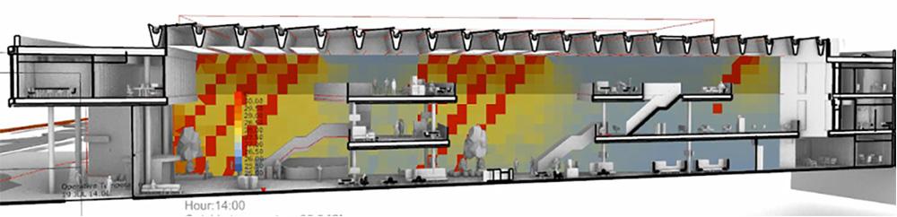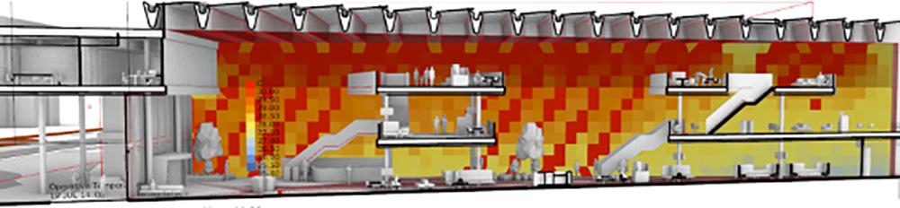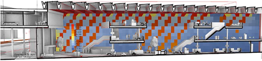 Simulatie van de binnentemperatuur van een atrium, met de volgende elementen: