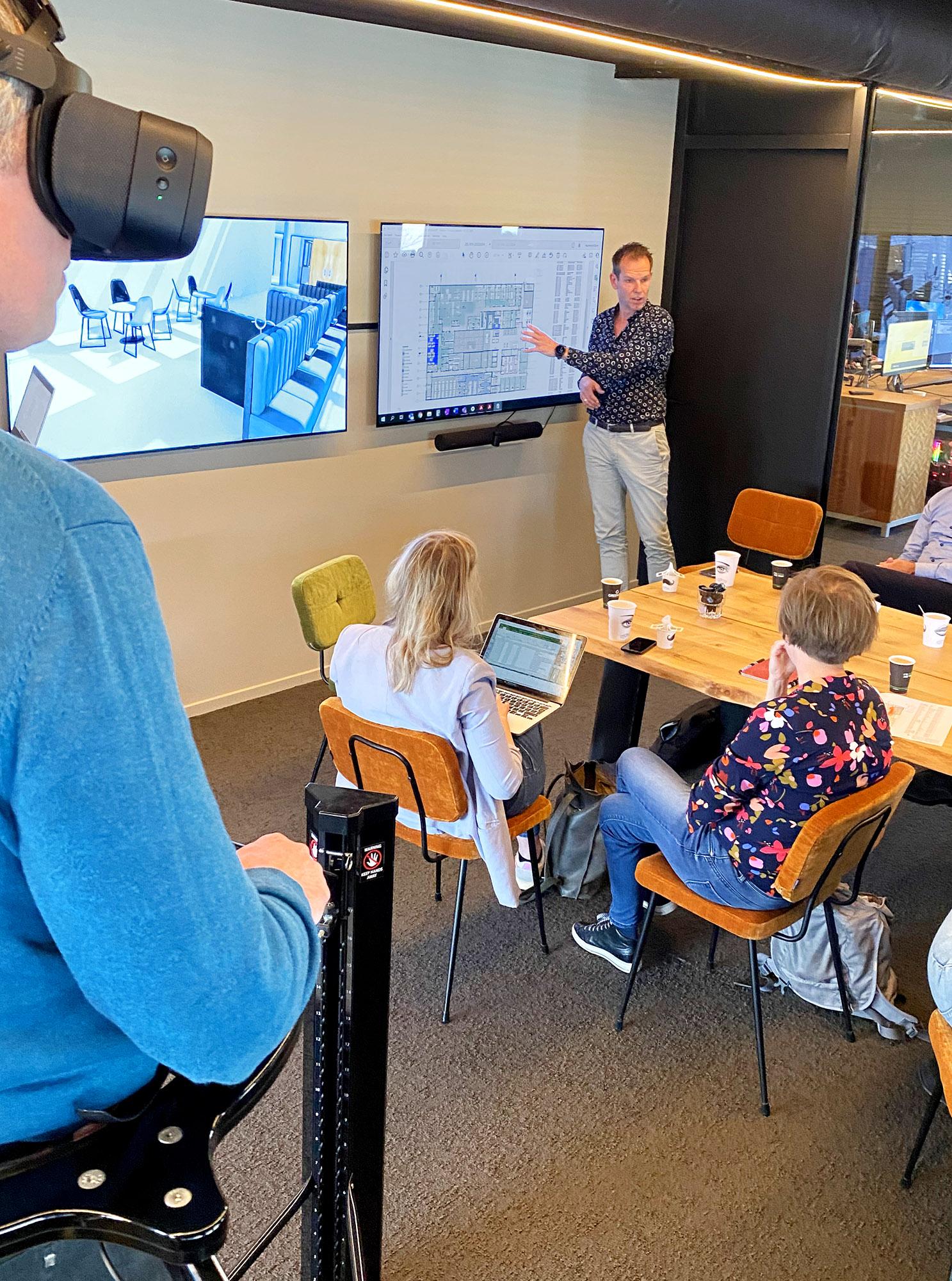 Verschillende gebruikersgroepen van het laboratorium hebben hun nieuwe werkomgeving virtueel getest in het VR center van K & R. Op de treadmill (lopende band) konden de verschillende gebruikers door het gebouw lopen en zelf ervaren hoe het nu echt is. Via beeldschermen volgden de overige deelnemers hun collega, zodat zij ook hun nieuwe omgeving goed konden beoordelen.