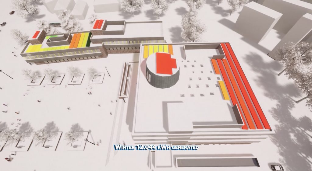Tijdens de studie naar verduurzaming zijn de effecten van diverse maatregelen onderzocht. Zo zijn bijvoorbeeld de effecten en opbrengsten van dakisolatie onderzocht en is de opbrengst van zonnepanelen gesimuleerd. De presentatie heeft door middel van VR View plaatsgevonden.
