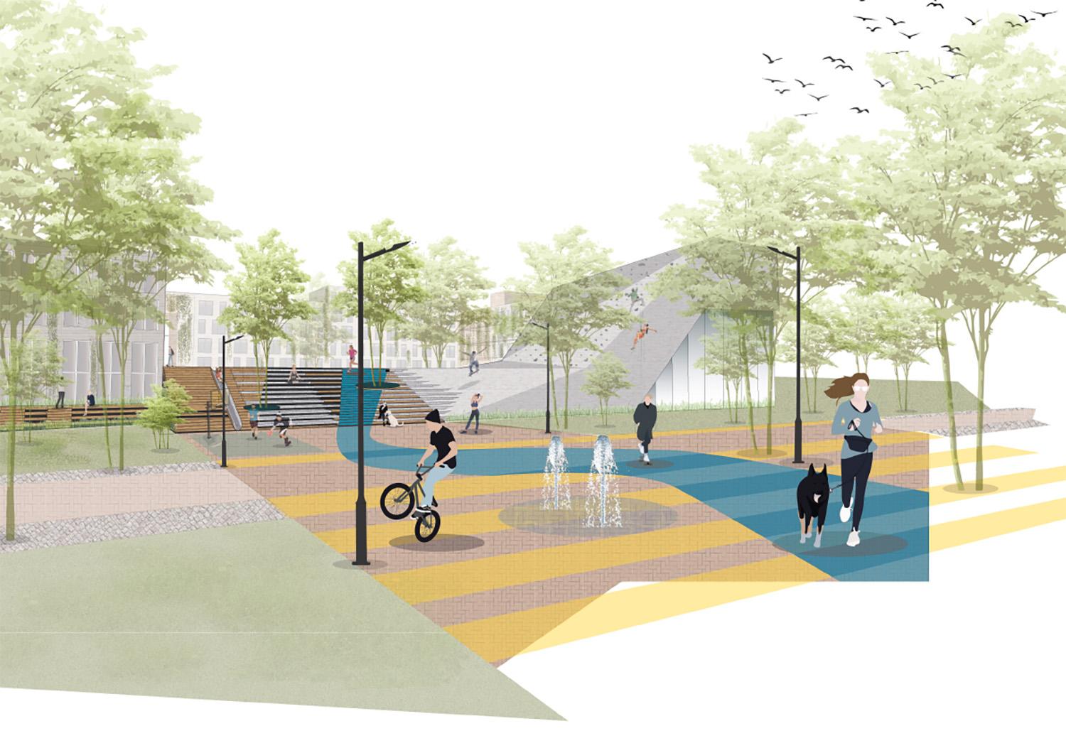 Doel is om hier een zeer levendig gebied te maken, ingevuld met verschillende functies. Ontmoeten, sociale verbinding tussen bewoners en omgeving en bewegen in een groene setting vormen het DNA van het plan.